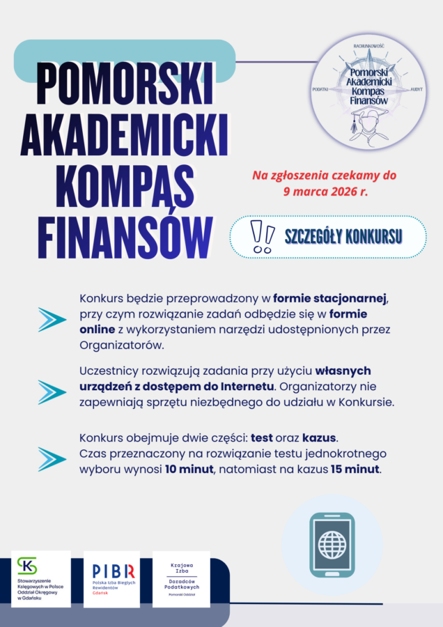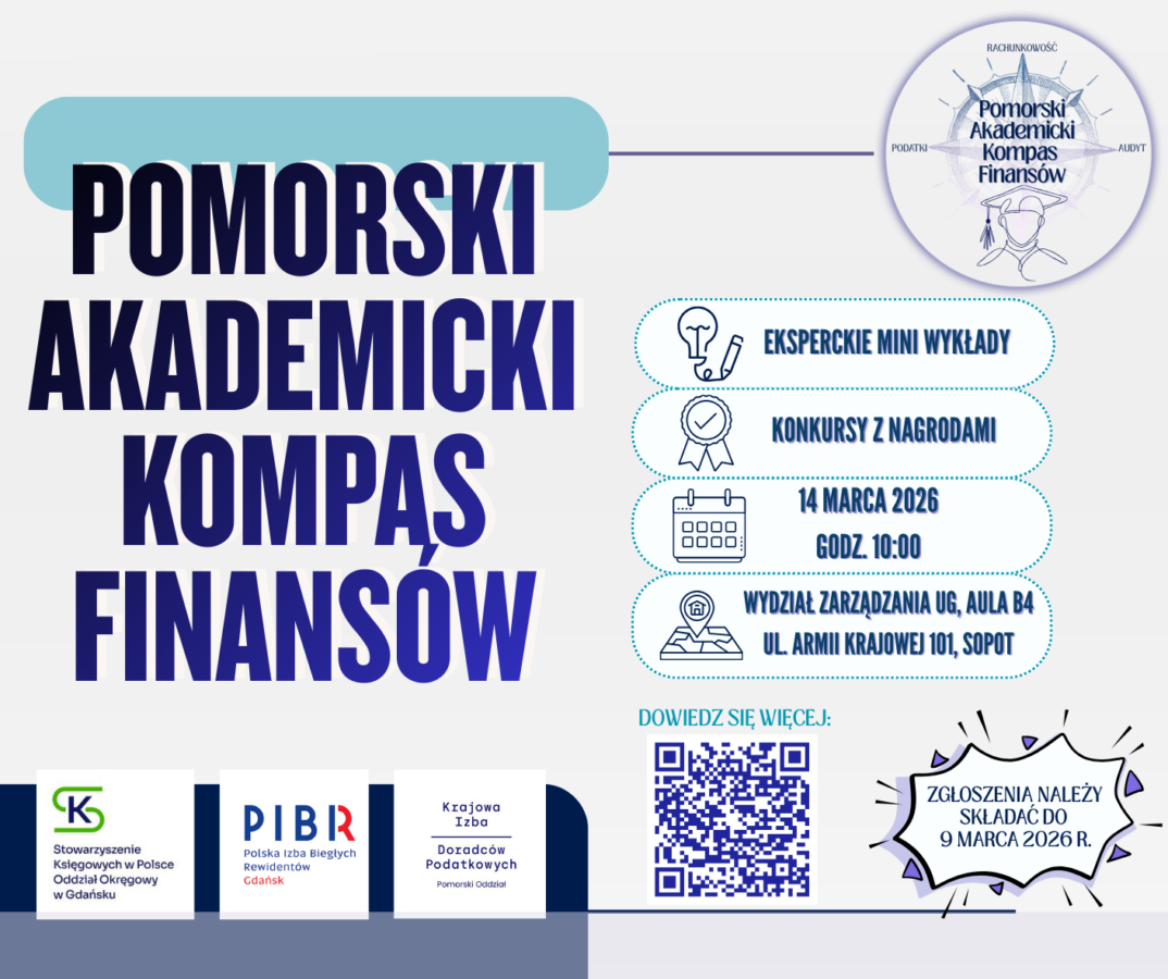 Już 14.03.2026r. odbędzie się Konkurs „Pomorski Akademicki Kompas Finansów”.