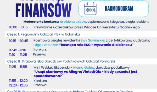 Uczestnicy zmierzą się z inspirującymi zadaniami i pytaniami z zakresu finansów, rachunkowości i podatków.